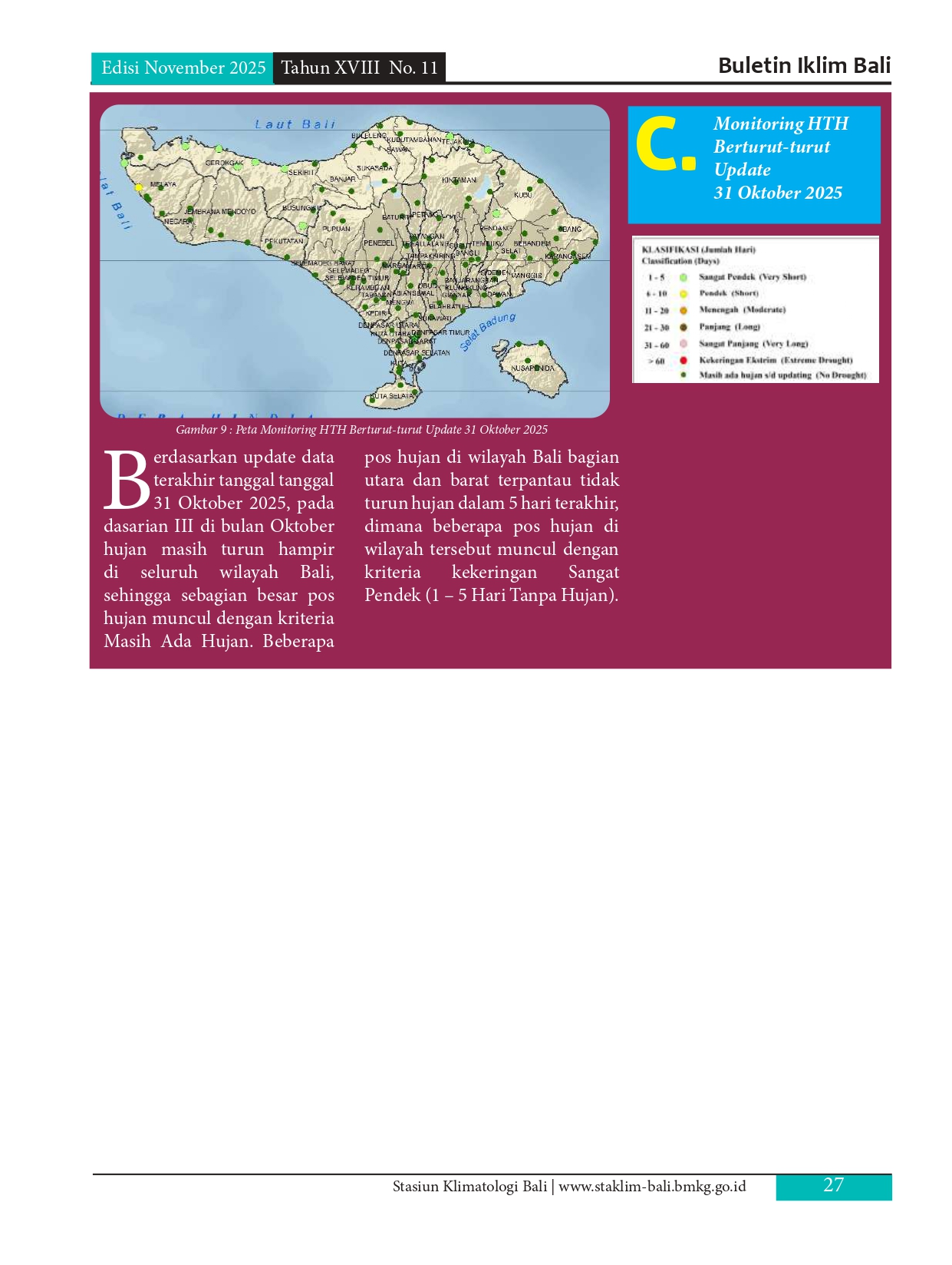 Melayani permohonan informasi iklim di pulau Bali, baik analisis maupun prakiraan yang diolah berdasarkan data pengamatan manual maupun otomatis melalui model analisis dan prakiraan yang telah distandarkan oleb BMKG
