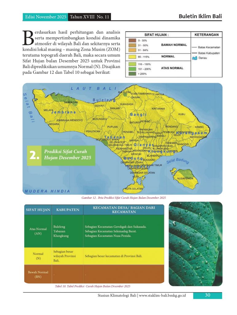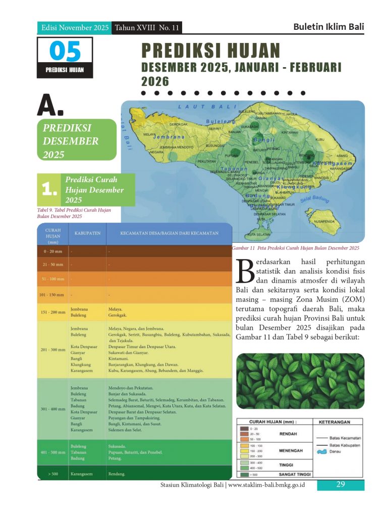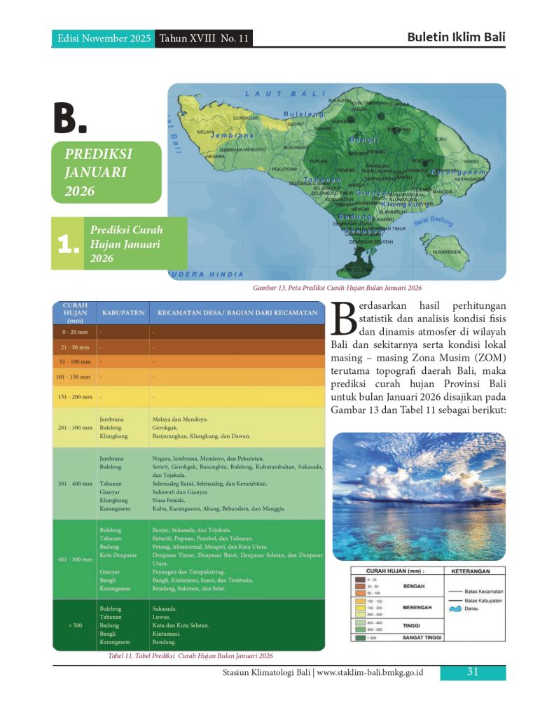Melayani permohonan informasi iklim di pulau Bali, baik analisis maupun prakiraan yang diolah berdasarkan data pengamatan manual maupun  otomatis melalui model analisis dan prakiraan yang telah distandarkan oleb BMKG