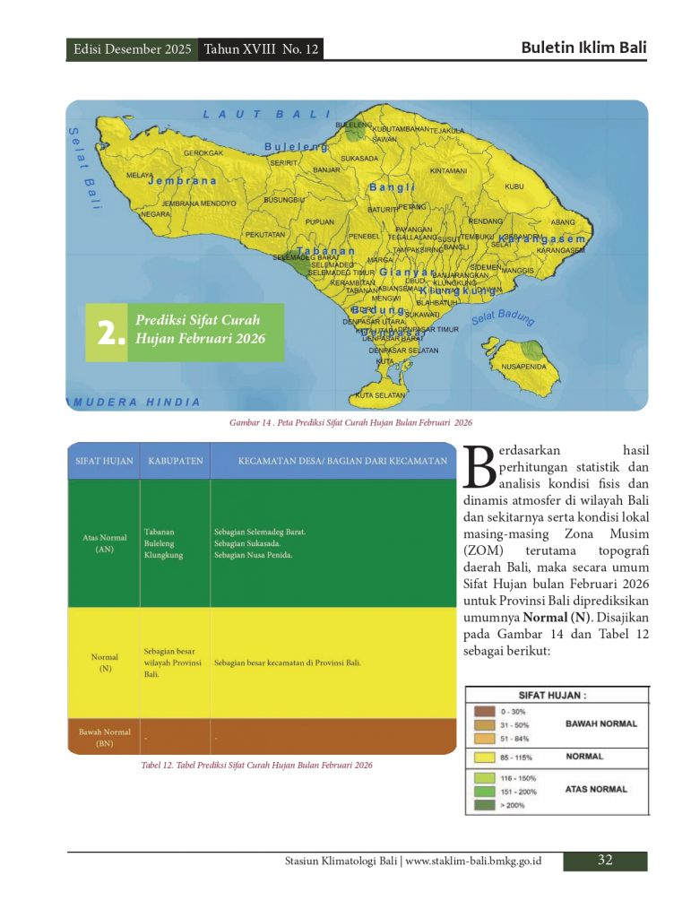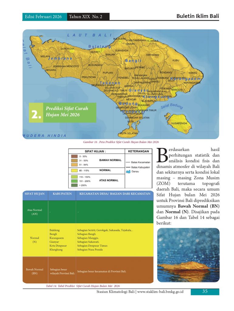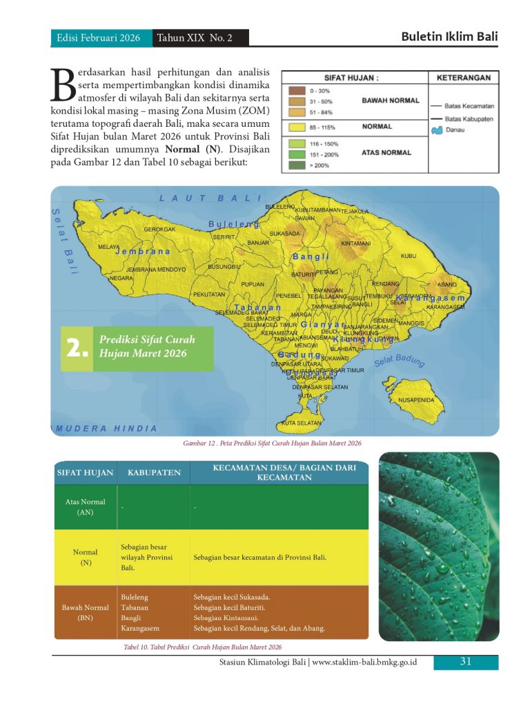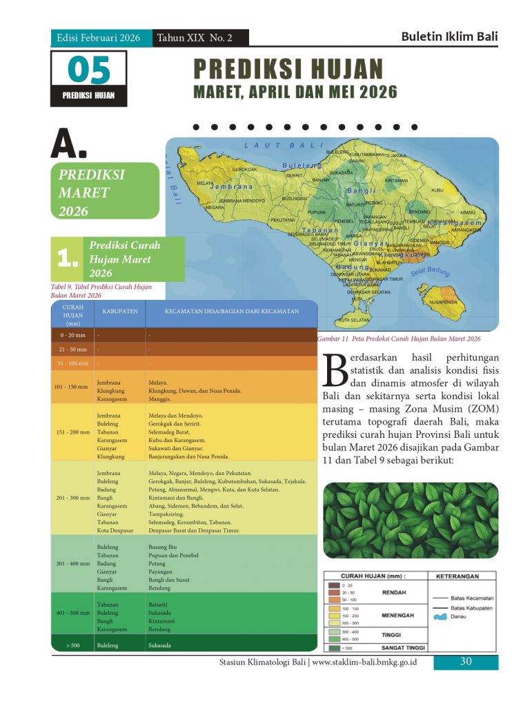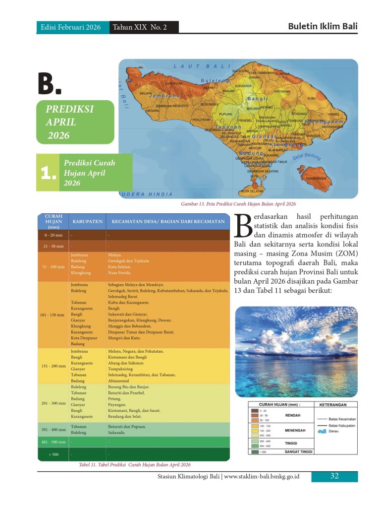 Melayani permohonan informasi iklim di pulau Bali, baik analisis maupun prakiraan yang diolah berdasarkan data pengamatan manual maupun otomatis melalui model analisis dan prakiraan yang telah distandarkan oleb BMKG