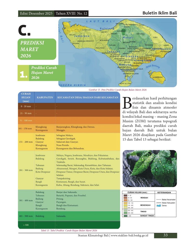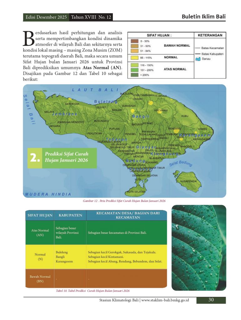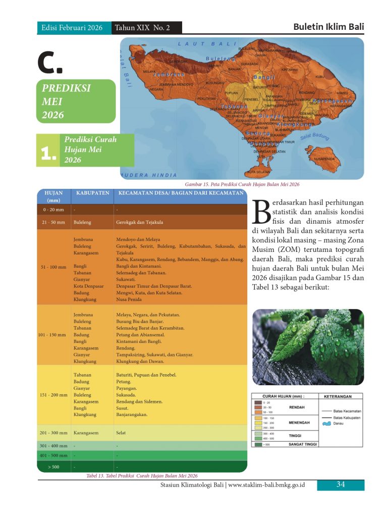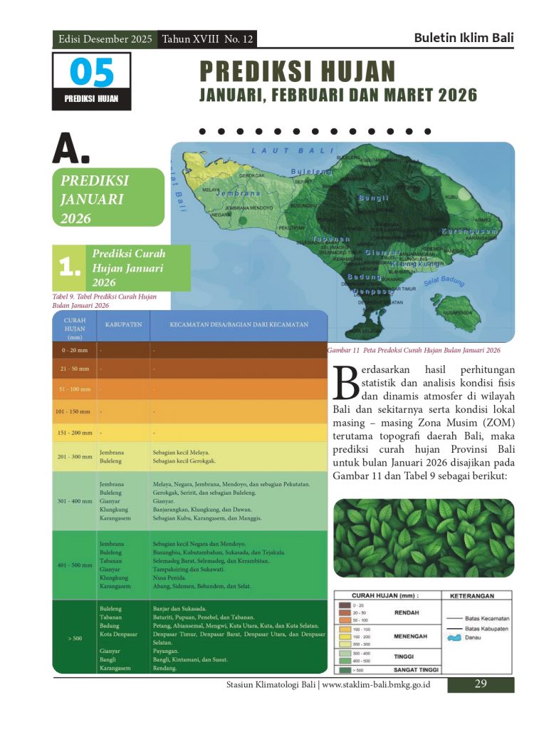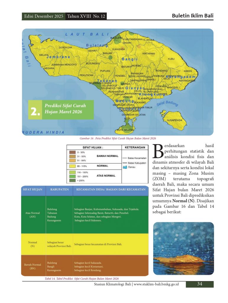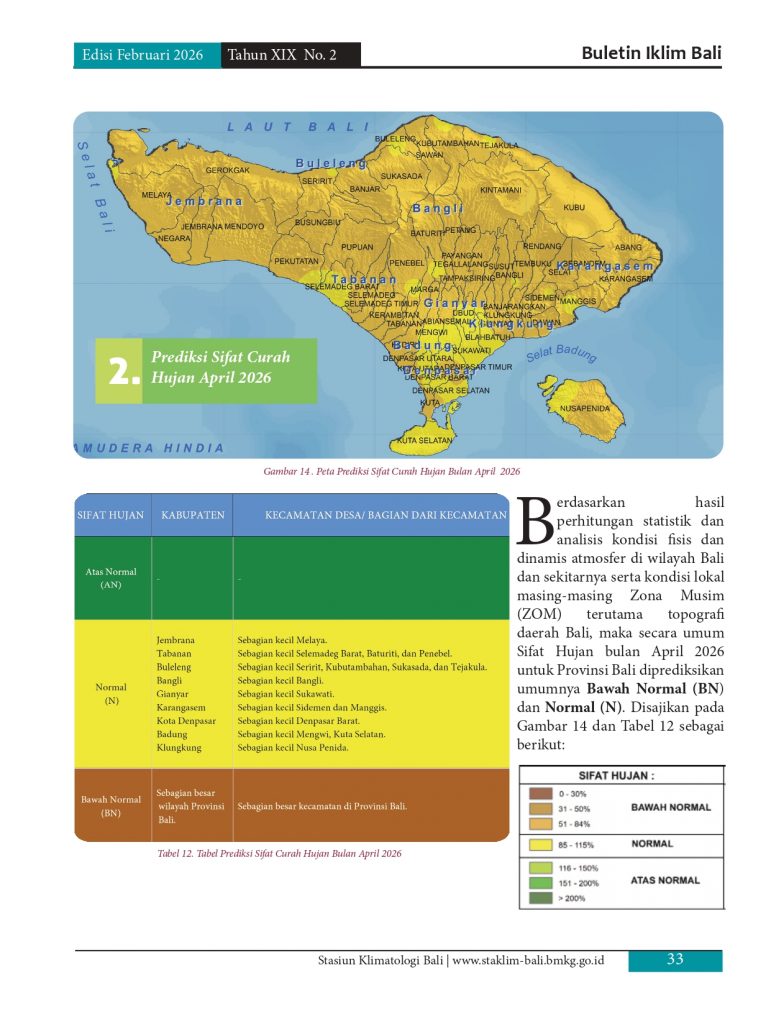Melayani permohonan informasi iklim di pulau Bali, baik analisis maupun prakiraan yang diolah berdasarkan data pengamatan manual maupun otomatis melalui model analisis dan prakiraan yang telah distandarkan oleb BMKG