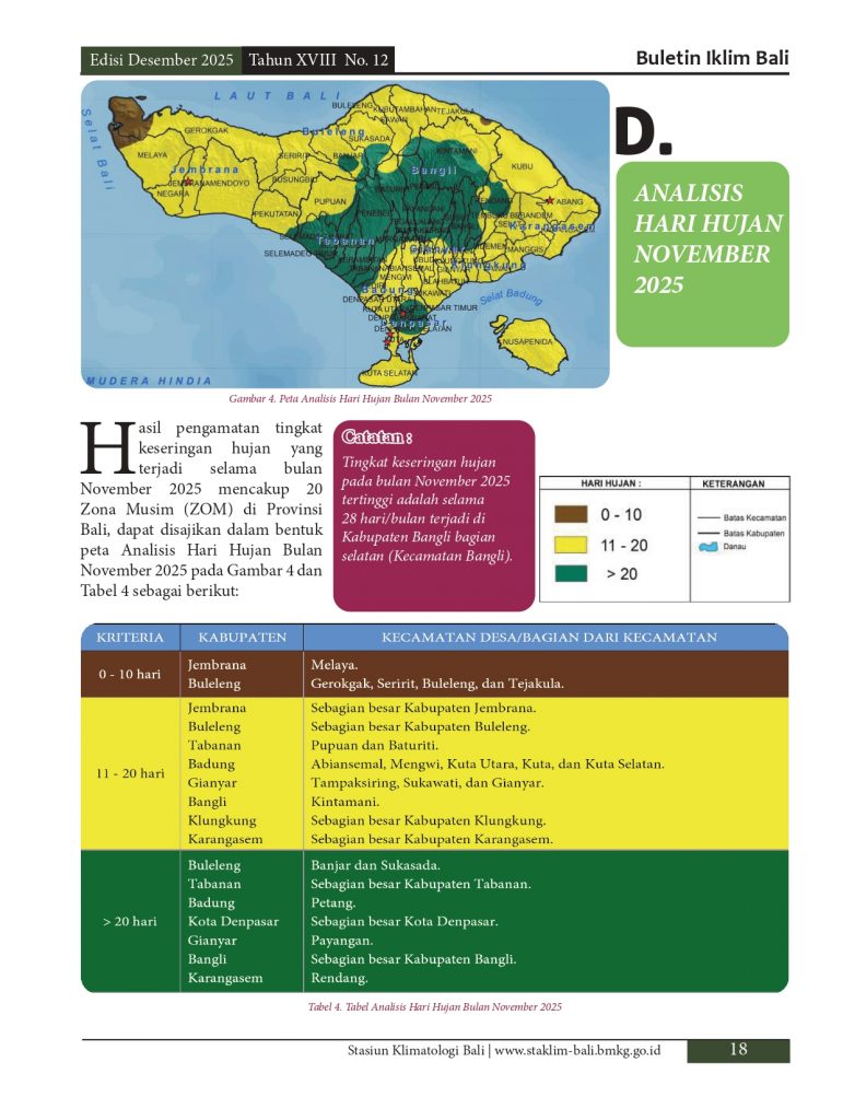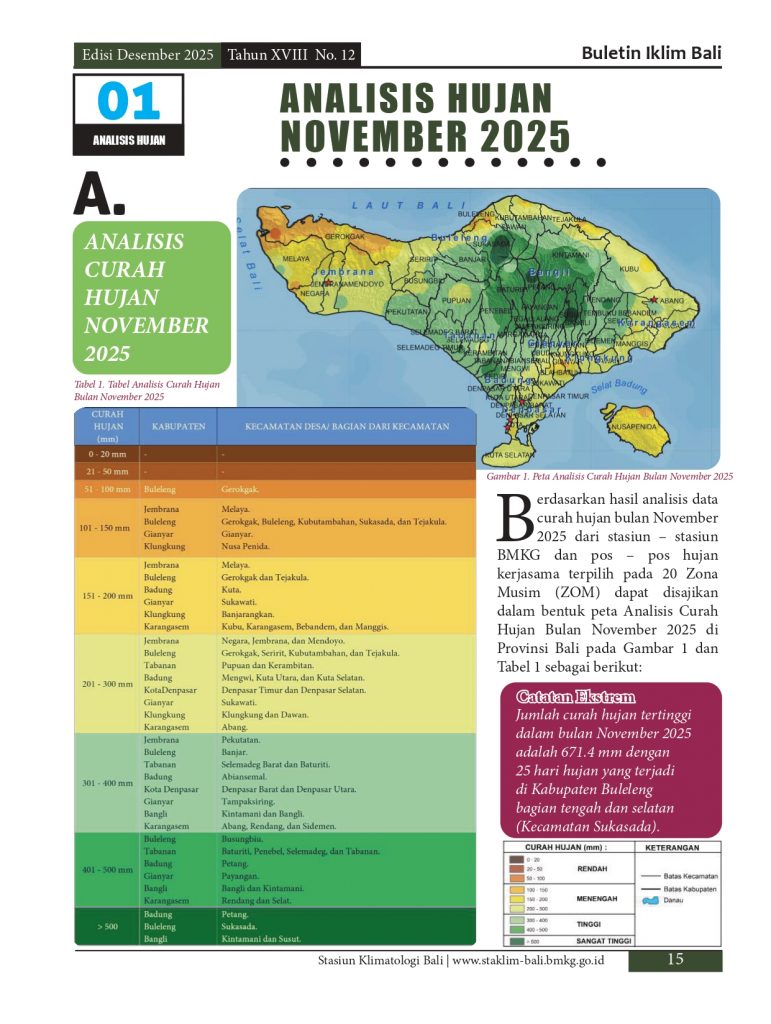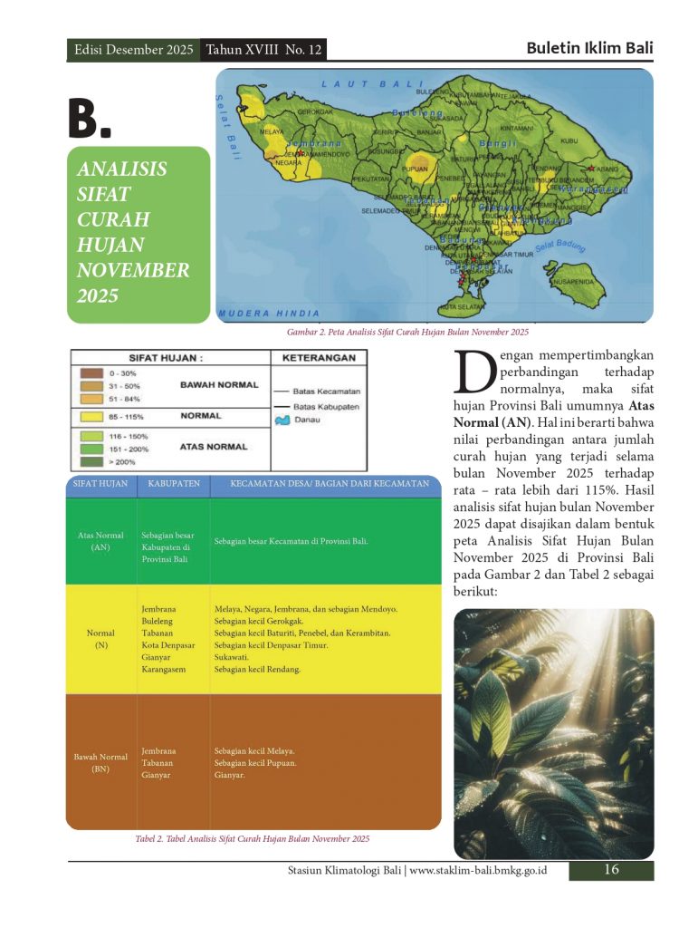 Melayani permohonan informasi iklim di pulau Bali, baik analisis maupun prakiraan yang diolah berdasarkan data pengamatan manual maupun otomatis melalui model analisis dan prakiraan yang telah distandarkan oleb BMKG